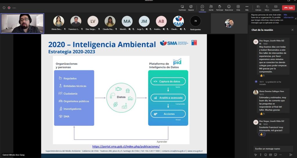 Santiago de Chile, 12 de abril de 2023.- En el marco del desarrollo de las actividades establecidas en el Proyecto de Cooperación Triangular (PyCTr) para el fortalecimiento de la fiscalización y cumplimiento ambiental de OEFA-Perú y la SMA-Chile (2022 – 2023) se dio inicio esta mañana al 8° Taller de Intercambio de Experiencias denominado: “Sistema de Monitoreo Continuo de Emisiones (CEMS), gestión, implementación, experiencias y dificultades”, el cual sedesarrolló de manera virtual. La actividad fue dictada por profesionales de la División de Fiscalización Ambiental (DFZ) y del Departamento de Seguimiento e Información Ambiental (DSI) de la Superintendencia del Medio Ambiente (SMA) de Chile, dirigido a los equipos del Organismo de Evaluación y Fiscalización Ambiental (OEFA) del Perú y de la SMA.