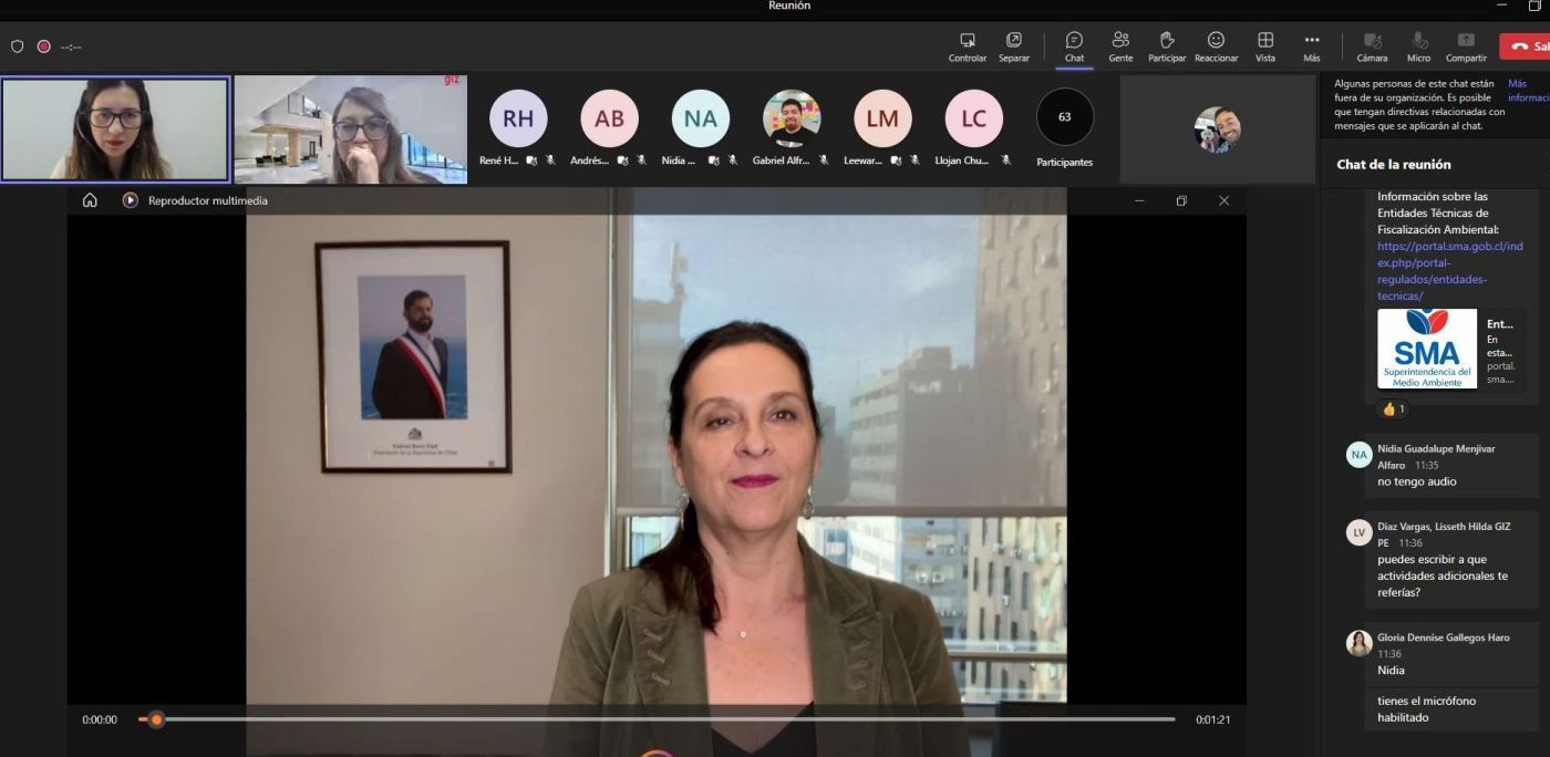 Luego, fue el turno de Lisseth Díaz, punto focal GIZ, quien valoró la instancia para dar a conocer e intercambiar experiencias entre pares de las entidades vinculadas a la fiscalización y cumplimiento ambiental en Latinoamérica y el Caribe. Además, Díaz recalcó la relevancia de este tipo de proyectos, los cuales favorecen el intercambio de experiencia entre países vecinos.